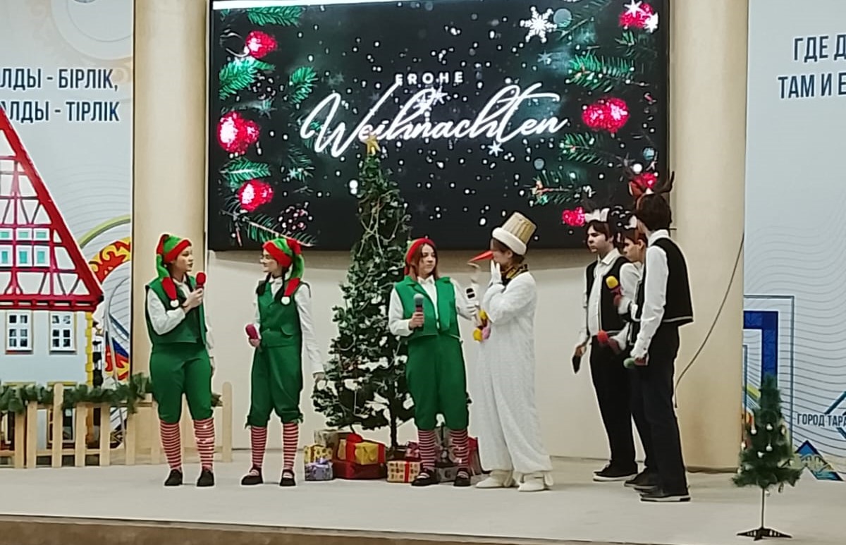 В канун Рождества сердце каждого человека невольно начинает ждать чуда. И в эти волшебные дни зал Дома дружбы г. Тараз превратился в настоящий сказочный мир. Здесь прошёл рождественский концерт-спектакль областного общества немцев «Почему у эльфов носки в полоску?», подаривший всем присутствующим свет, радость и ощущение настоящего волшебства.